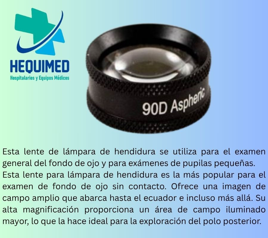 Lente de diagnóstico de uso universal con amplio campo de visión y fácil manejo. Ideal para exámenes rápidos de retina, mácula y nervio óptico en lámpara de hendidura.